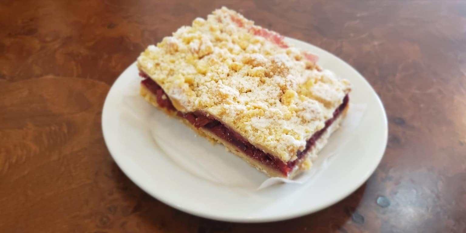 Delicious cherries with sugary crumbles on top.