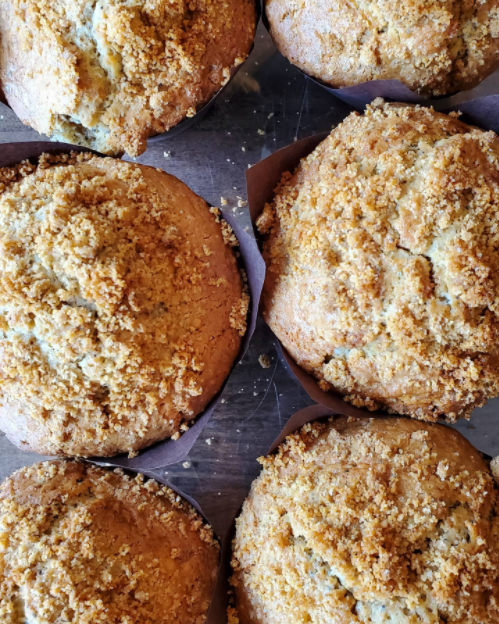 Muffins au citron et aux graines de pavot garnis d'un crumble à la cannelle.