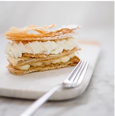 Pâte feuilletée avec crème pâtissière et crème Chantilly.