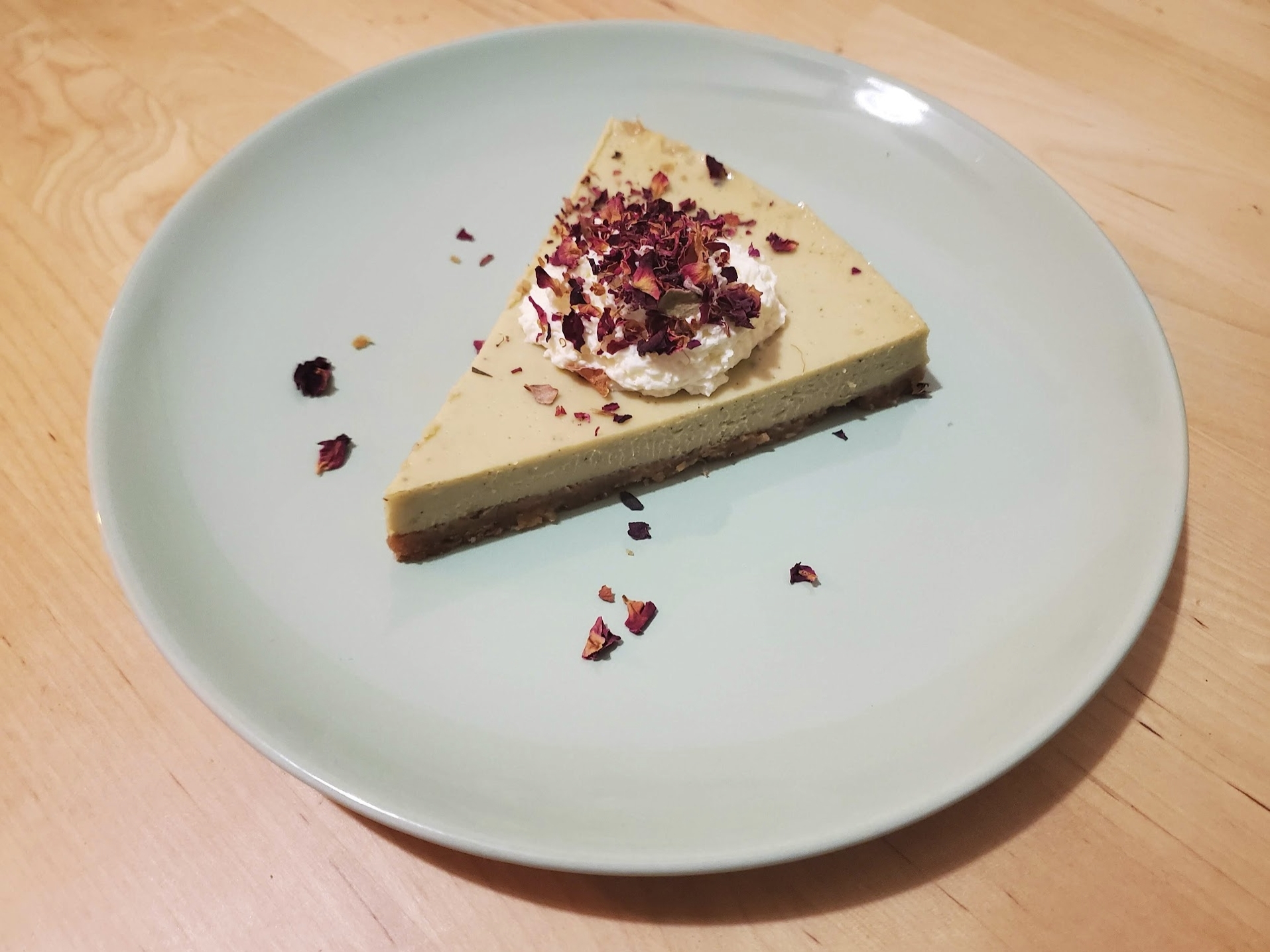 The cheesecake is infused with the floral and apricot-peach fragrance of Taiwanese Gui Hua Osmanthus Oolong.