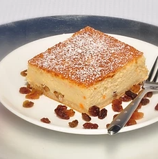 A traditional Polish cheesecake consisting of a very thin layer of vanilla shortcake topped with a filling of lemon-scented farmer's cheese flavoured with lemon, orange, almond and vanilla, and laden with raisins.