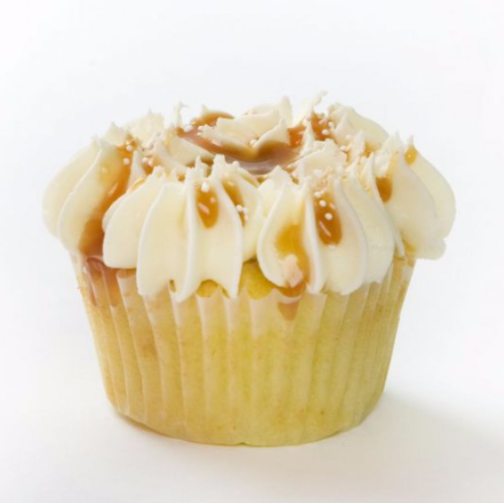 Un cœur coulant au caramel salé fait maison dans un gâteau et glaçage à la vanille de Madagascar.