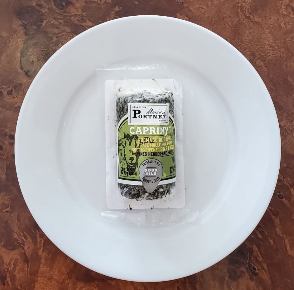 Goat cheese, flavoured with herbs; soft and creamy, slightly acidulous. Other available flavours: plain and pepper.