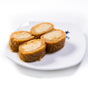 Crunchy strings of phyllo dough twisted around chopped cashews
