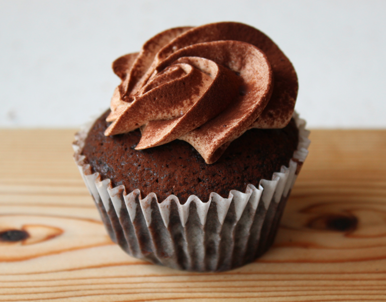 Cupcake au chocolat 100% vegan avec glaçage au chocolat.