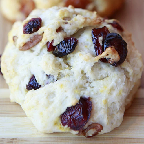 Scones au zeste d'orange, canneberges et pacanes. Végétalien.