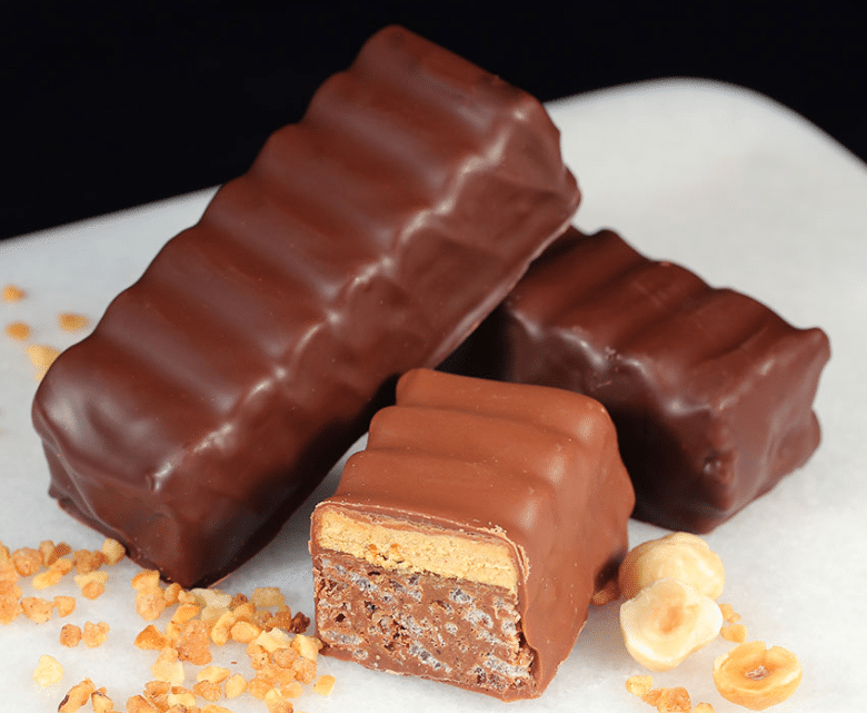 Savourez un délicieux caramel mousseux, sur un praliné au riz soufflé, le tout enrobé de chocolat.