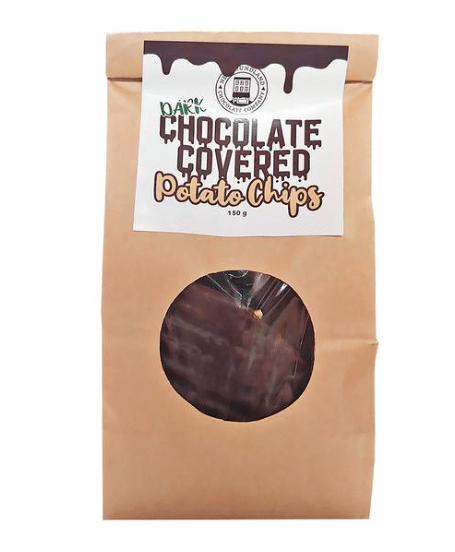 Dark chocolate covered potato chips.150g.