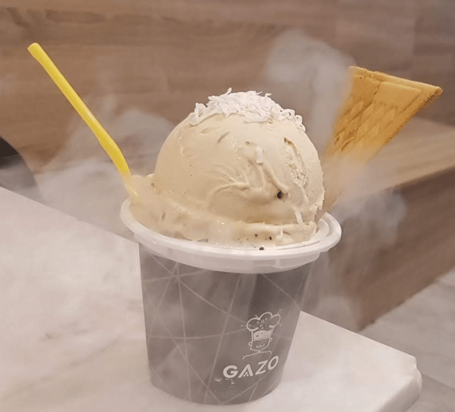 Earl-Grey-flavoured ice cream crafted with liquid nitrogen.