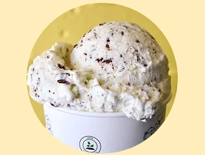 Leur version des pépites de chocolat à la menthe ; crème glacée à la menthe poivrée avec des morceaux de chocolat noir qui fondent en bouche.