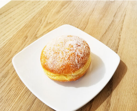 Beignet classique roulé dans du sucre et rempli de confiture de fraises.