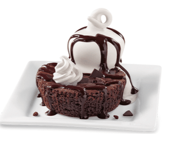 A warm, chewy, rich chocolate brownie topped with cocoa fudge and choco chunks, served hot from the oven with cold, creamy DQ vanilla soft serve