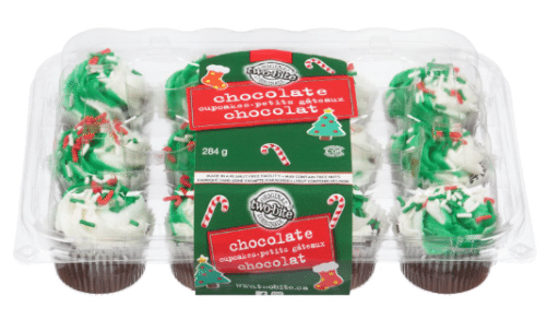 Paquet de 12 mini cupcakes de Noël au chocolat à deux bouchées.