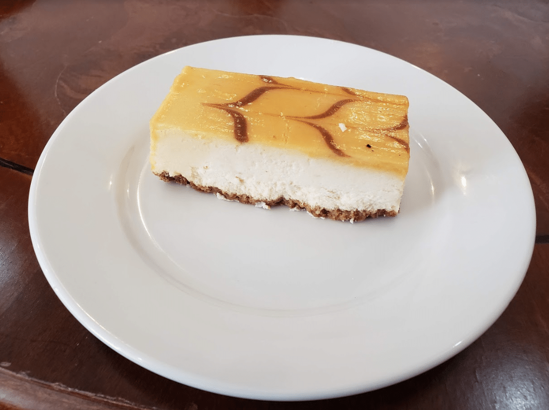Plat sucré sur une croûte composé de tofu, à la texture et au gout imitant le gâteau au fromage